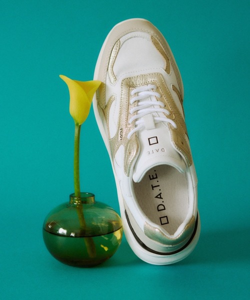 D.A.T.E.のアイコン、FGスニーカー ジェルインソールと軽量アウトソールで快適さを追求 ■point D.A.T.E.(デイト)のアイコンモデルFG(エフジー)。 目を引くデザインと履きやすさで各方面から定評があるダッドスニーカー。 2.5cmのジェルインソールと、5.5cmの軽量アウトソールがデザインポイント。 素材は全て厳選されたイタリア製を使用。 ブラックを基調として、グレーの異素材の組み合わせは、カジュアルにも綺麗めにも、コーディネートしやすいアイテム。 ■size 35:22.0cm 36:22.5cm 37:23.5cm 38:24.5cm 39:25.5cm 40:26.0cm 【D.A.T.E./デイト】 イタリア・フィレンツェ発のシューズブランド。 ブランド名とロゴは立ち上げの4人の頭文字から。 2006年にはPitti UOMOでの“Best NEW Proposal”として話題となった。 新進シューズブランドとしてその地位を確立し、ヨーロッパ20ヶ国および世界のトップストアや有名百貨店で販売されている。 メンズで展開し話題となったダッドスニーカー“FG”の待望のレディースモデルが登場し、スタイリスト人気から一躍有名に。 従来の定番モデルも部分的にエナメルやペイントを施したものが多く、見ているだけで楽しいコレクションとなっている。 ≪お気に入り登録≫でお得な情報盛りだくさん ・“商品のお気に入り登録”で再入荷通知やラストの通知、セール通知も受け取ることができます。 ・“ブランドのお気に入り登録”で新商品や再入荷など、お得な情報を受け取ることができます。 ※ご注文いただいた予約商品のお届け時期の確認は、注文履歴ページより行えます。 ※他のキャンペーンにより、期間中に価格が変動する場合があります。 ※セールは予告なく終了させていただく場合もあります。
