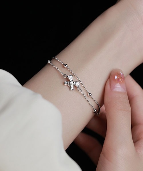 さりげないリボンがかわいい♡ 2連のシルバーブレスレット ベースがシンプルなので、使いやすく、 シルバーデザインが甘すぎない印象に◎ ※ATTENTION※ ■撮影の光量などにより画像と実物の色味が異なって見える場合がございます。 ■時期により商品の色味が画像と若干異なる場合がございます。 あらかじめご了承ください。 【float】 コーディネイトに取り入れやすいシンプルなデザインで、 リーズナブルなアイテムをセレクトしています。
