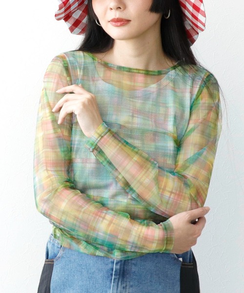 レトロチェックが可愛すぎるシャーリングチュールトップス レトロデザイン×シアーアイテムで今年のトレンド間違いなしな一着◎ 一枚で合わせても、レイヤードでチラ見えスタイルにも使えます。 同色でレイヤードすると、一気にこなれ感のあるコーデに。 -------------------------------------- 透け感:あり 裏地:なし 伸縮性:あり ケア方法:洗濯機可 ※お洗濯の際は洗濯表示を必ずご確認ください。 --------------------------------------