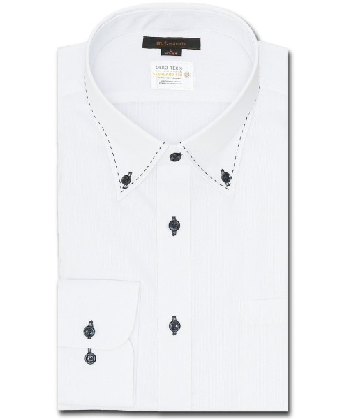 エムエフエディトリアルメンズ/m.f.editorial:MEN 形態安定 吸水速乾 スタンダードフィット ボタンダウン長袖シャツ ■素材特徴 ポリエステル65% コットン35%の素材を使用しています。コットンの柔らかい風合が肌に優しく、ポリエステルが加わることで強度も増し洗濯後に乾きやすい生地です。素材や製品に有害な化学物質が含まれていない、世界トップレベルの安全な繊維製品であることを証明する「OEKO TEX STANDARD 100」の認証タグ付きです。サスティナブルな環境型社会に貢献するエコと機能が両立した、コストパフォーマンスに優れた素材です。 ■機能 【形態安定】洗濯後シワが入りにくく、ご家庭でのお手入れも簡単。 【吸水速乾】汗を素早く吸収して乾かし、サラッとした着心地をキープ。 【マシンウォッシャブル】洗濯機で洗えます。(要ネット・標準水流) ■デザイン ドビーの織り柄で奥行きのある表情が楽しめます。衿型はアンタイド(ノーネクタイ)でも衿立ちよく収まり、オフィスカジュアルにもぴったりなボタンダウンを採用しています。ハンドメイド風のステッチがアクセントになっています。 ■シルエット スタンダードフィットモデルです。ボディラインに心地良くフィットして、スタイリッシュに着用していただけます。袖ぐりの可動域を広げて動きやすく、ウエストをシェイプさせて美しいシルエットを実現しています。 ■コーディネート ワイシャツ、ビジネスシャツ、ドレスシャツとして、スーツスタイルやジャケットインに大活躍してくれます。ビジネスシーンからプライベートまでオンオフ兼用で着回し可能です。 モデル:スタンダードフィット シーズン:春夏 展開カラー:白(ホワイト) *アテンションタグ・洗濯ネームを御確認の上、着用又は取り扱い下さい。 *光の当たる場所や高温多湿になる場所での保管は避けて下さい。 *使用の有無に関わらず、経年劣化は進行いたしますのでご了承下さい。 *閲覧デバイス・環境により質感・色味に誤差が生じる場合がございます。 【お取り扱い方法について】 *形態安定加工シャツは、ご家庭での洗濯を基本にして作られています。 *フロントボタンを留め、洗濯ネットに入れて洗うと生地が傷みにくくなります。 *ボタンダウンの場合は、衿先ボタンを外してから洗濯してください。 *しつこい汚れには部分洗い用洗剤を塗布し、つけ置きすると汚れ落ちが良くなります。 *水分の重みでシワを伸ばす性質なので、滴が垂れるくらいの濡れ干しが基本です。 *脱水時間は15秒程度の短めに抑え、シワが付く前に直ぐに干すのが理想です。 *洗濯機から取り出したら、ザッとふりさばき、シワを伸ばしながら形を整えてください。 *多少厚みのあるハンガーにかけて、風通しの良い場所で陰干ししてください。 *シワが気になる部分は、中低温でアイロンをかけてください。 *高温・高湿プレスはお避け下さい。 *衿・カフス部分はのりづけをしないで形を整えてください。