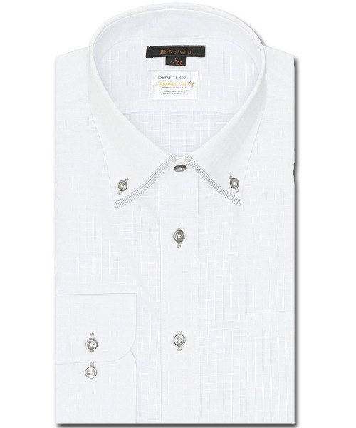 エムエフエディトリアルメンズ/m.f.editorial:MEN 形態安定 吸水速乾 スタンダードフィット ボタンダウン長袖シャツ ■素材特徴 ポリエステル65% コットン35%の素材を使用しています。コットンの柔らかい風合が肌に優しく、ポリエステルが加わることで強度も増し洗濯後に乾きやすい生地です。素材や製品に有害な化学物質が含まれていない、世界トップレベルの安全な繊維製品であることを証明する「OEKO TEX STANDARD 100」の認証タグ付きです。サスティナブルな環境型社会に貢献するエコと機能が両立した、コストパフォーマンスに優れた素材です。 ■機能 【形態安定】洗濯後シワが入りにくく、ご家庭でのお手入れも簡単。 【吸水速乾】汗を素早く吸収して乾かし、サラッとした着心地をキープ。 【マシンウォッシャブル】洗濯機で洗えます。(要ネット・標準水流) ■デザイン ドビーの織り柄(チェック)で奥行きのある表情が楽しめます。衿型はアンタイド(ノーネクタイ)でも衿立ちよく収まり、オフィスカジュアルにもぴったりなボタンダウンを採用しています。切り替えが映えるマイターカラーがアクセントになっています。 ■シルエット スタンダードフィットモデルです。ボディラインに心地良くフィットして、スタイリッシュに着用していただけます。袖ぐりの可動域を広げて動きやすく、ウエストをシェイプさせて美しいシルエットを実現しています。 ■コーディネート ワイシャツ、ビジネスシャツ、ドレスシャツとして、スーツスタイルやジャケットインに大活躍してくれます。ビジネスシーンからプライベートまでオンオフ兼用で着回し可能です。 モデル:スタンダードフィット シーズン:春夏 展開カラー:白(ホワイト) *アテンションタグ・洗濯ネームを御確認の上、着用又は取り扱い下さい。 *光の当たる場所や高温多湿になる場所での保管は避けて下さい。 *使用の有無に関わらず、経年劣化は進行いたしますのでご了承下さい。 *閲覧デバイス・環境により質感・色味に誤差が生じる場合がございます。 【お取り扱い方法について】 *形態安定加工シャツは、ご家庭での洗濯を基本にして作られています。 *フロントボタンを留め、洗濯ネットに入れて洗うと生地が傷みにくくなります。 *ボタンダウンの場合は、衿先ボタンを外してから洗濯してください。 *しつこい汚れには部分洗い用洗剤を塗布し、つけ置きすると汚れ落ちが良くなります。 *水分の重みでシワを伸ばす性質なので、滴が垂れるくらいの濡れ干しが基本です。 *脱水時間は15秒程度の短めに抑え、シワが付く前に直ぐに干すのが理想です。 *洗濯機から取り出したら、ザッとふりさばき、シワを伸ばしながら形を整えてください。 *多少厚みのあるハンガーにかけて、風通しの良い場所で陰干ししてください。 *シワが気になる部分は、中低温でアイロンをかけてください。 *高温・高湿プレスはお避け下さい。 *衿・カフス部分はのりづけをしないで形を整えてください。