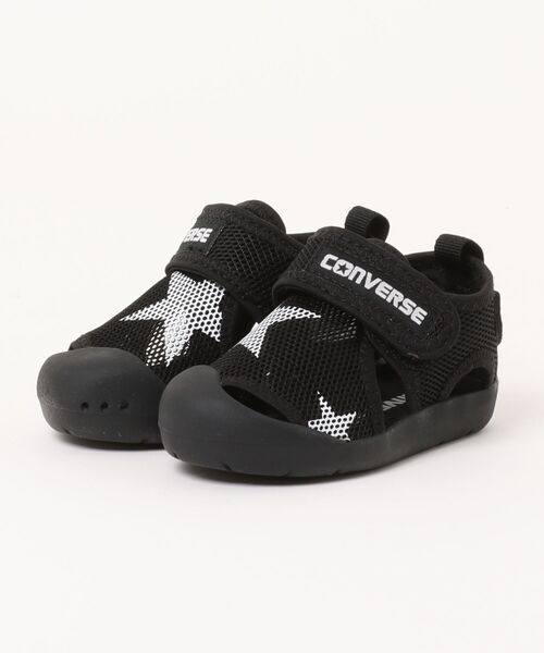 水辺にも街履きにも多彩なサマーシーンに活躍するキッズ向けサンダルモデル。コンバースらしい大きなスターをアッパーに大胆にあしらった、ワンベルトタイプのデザインで、脱ぎ履きしやすいデザインを採用。アッパーには通気性や速乾性の高いメッシュ素材を採用し、水抜き穴が施されたアウトソールと、星柄のエンボスが特徴的なE.V.A.フットベッドは、水はけの良い仕様。また、ラバーアウトソールは爪先まで巻き上げることで耐久性を向上し、爪先を守る安全な設計。