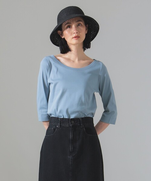 上質なベーシックアイテム ■ デザイン シンプルながらも女性らしい上品な雰囲気漂うカットソー。程良く広めなラウンドネックのため、ジャケットのインナーとしても活躍するアイテムです。 ■ コーディネート デザイン性のあるスカートやパンツと好相性。コーディネートの主役となるアイテムを引き立ててくれます。 ■ サイズ タイトすぎず、さらりと1枚でも安心感のあるサイズ感。 ■ 素材 100%オーガニックコットンを使用し、しっとりとした上質なタッチが魅力です。 ■ ケア方法 手洗い可(詳細は商品についている品質表示ラベルをご覧ください)