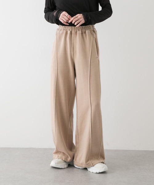 ニュアンス感あふれるスウェットパンツ 〇ピグメント加工がかわいい色味 〇中心に入ったタックデザインで足長効果あり 〇裾にはドローコードが施されているので、シルエットの変化もお楽しみいただけます。 styling ピグメント加工をすることでビンテージ品のような風合いに仕上げています。ルーズシャツやジャケットとの合わせが今期らしくておすすめです! 【2025 Spring/Summer】【25SS】 ※この商品は縫製後に製品染めをしています。その為、一点一点に微妙な色、サイズ、風合いなどの違いがあります。予めご了承ください。 ※商品画像は、光の当たり具合やパソコンなどの閲覧環境により、実際の色味と異なって見える場合がございます。予めご了承ください。 ※商品の色味の目安は、商品単体の画像をご参照ください。 ▼お気に入り登録のおすすめ▼ お気に入り登録商品は、マイページにて現在の価格情報や在庫状況の確認が可能です。 お買い物リストの管理に是非ご利用下さい。 素材感 透け感 : なし 伸縮性 : あり 裏地 : なし 光沢 : なし ポケット : あり one