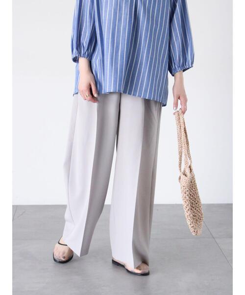 タック使いとサイドポケットがポイントになったパンツ。ゆとりのあるワイドシルエットで気になるレッグラインもカバーし、リラックス感のある穿き心地に。デイリーユースもしやすく、カジュアルからキレイめにと幅広いコーディネートが楽しめる1着です。 ※商品画像は、撮影環境やお客様のご利用のPC・スマートフォンのモニター環境などにより実物と色味に差異がある場合がございます。【その他採寸】F ウエスト:[後ゴム仕様]64cm