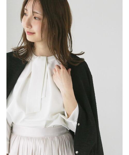 ボウタイデザインが上品な印象を与えてくれるブラウス。 さらっと着られる柔らかな生地感で、軽やかに着用することができるのも嬉しいポイント。 着回しやすいシンプルな無地と、アクセントに映える幾何学柄のバリエーションも魅力です。 ※商品画像は、撮影環境やお客様のご利用のPC・スマートフォンのモニター環境などにより実物と色味に差異がある場合がございます。