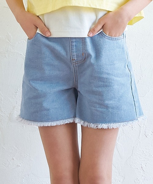 すっきりシルエットのデニムショート丈パンツ。 短すぎない丈感で、足がすっきり細見え効果◎ トレンド感のあるケミカルウォッシュ加工で、 おしゃれかっこいい大人っぽいスタイルに! 伸縮性:ウエストのみあり 透け感:なし 裏地:なし ポケット:あり 生地感:柔らかいデニム生地 注意点:お洗濯方法によっては縮みや色あせの可能性あり。乾燥機等のご使用はお控え下さい。 ▼生地や素材の性質により2cm前後サイズ誤差が出る場合がございます。 ▼モデル着用写真は撮影環境により、多少実際のカラーと異なる場合がございます。 ▼色落ちの恐れがありますので、他のものと分けて洗って下さい。 ▼当商品は機械による生産の過程上、『生地を織る際の糸の継ぎ目』や多少の『ほつれ』、繊維の『混紡』、形やサイズに多少の『誤差』が生じる場合がございます。 ジュニア ボトムス デニム ショートパンツ フリンジ ポケット 学校 ガールズ 女の子 子供服 120 130 140 150 COCA coca COCA coca