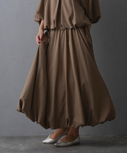 【バルーンスカート】【Fabric】ブロード素材【Design】ポワンと広がるボリューム感が可愛いバルーンスカートが新登場。ウエストはゴム+スピンドルで着脱ラクチンが嬉しいポイント。ポケット部分のデザインがアクセントに。トレンド感のあるロング丈でショート丈のトップストとの相性も◎【Styling】タイトめのトップスと合わせても下にボリュームがくるのでスタイルUP見えします。ロング丈のコートとも相性がよく、大人フェミニンな印象になります。同素材のブルゾン(メーカー品番:51053702)と合わせると統一感のあるセットアップコーデを楽しめます。-------------------------■透け感:なし■裏地:あり■伸縮性:なし■光沢感:なし■生地の厚さ:普通-------------------------☆★お買い物をお楽しみいただく為に★☆★商品のお気に入り登録完売カラーの再入荷通知や、ラスト1点の通知、セールの通知も受け取ることができます。★ブランドのお気に入り登録新商品や再入荷等、ブランドのお得な情報をいち早く受け取ることができます。