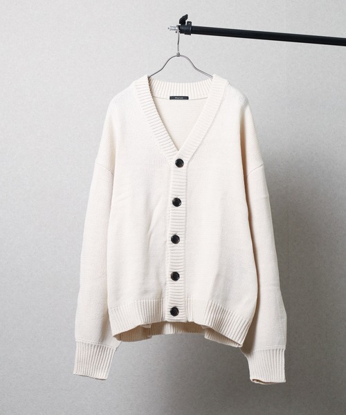 肩から落ちるドロップショルダーが特徴的なシルエット。 メンズ、レディース問わず着用できるユニセックスシルエットです。 ワンピースや薄手のニットの上から羽織るだけでヌケ感のあるこなれた雰囲気を演出してくれます。 ボトムやワンピースなどと合わせやすいミドル丈なので様々なアイテムに合い、1枚持っていると活躍してくれるニット。