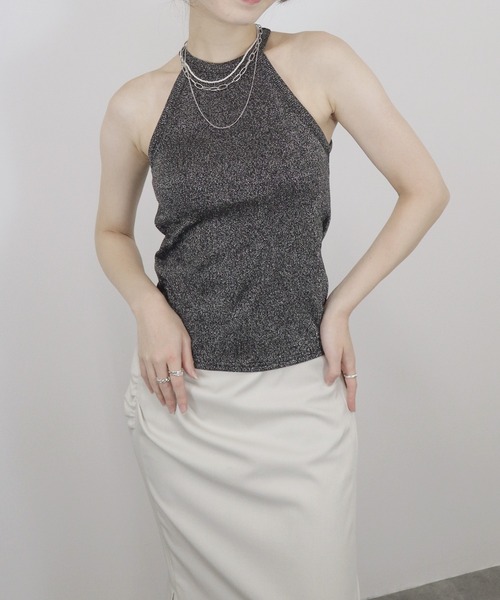 【ZOZO限定】ホルターネックタンクトップ/ カップ付き インナー キャミソール アメスリ シンプル 重ね着 レイヤード 肌見せ