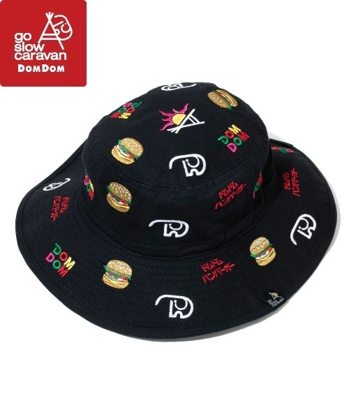 ☆go slow caravan☆ DOMDOM × gsc ライトキャンバス刺繍キャンパーハットサイズ・・・高さ9㎝ ツバ7.5㎝ 筒幅58㎝【ドムドムハンバーガー×go slow caravan】日本初のハンバーガーチェーン店『ドムドムハンバーガー』とのコラボレーションアイテム。定番のキャンパーハットに、ドムドムのマスコットキャラクター「どむぞうくん」やハンバーガー、旧ロゴを総刺繍。広めのブリムはUVカットと日差しよけに十分な広さ、汗止めバンドは吸水速乾素材を使用。ブリムにワイヤーを備えているので好みの形に整えて被っていただけます。また、オリジナルのあご紐が付いているので、風に飛ばされません。野外フェスやキャンプなど、幅広く外遊びにお使いいただける万能ハットです。※着用、お取り扱いの際は、商品についている品質表示とアテンションタグを必ずご確認下さい。【go slow caravan / ゴースローキャラバン】2008年11月11日(世界平和記念日)『外遊び』をテーマに日本で誕生したブランド。機能素材や天然素材を使用しながら、クレイジーカラーや総柄、ポップなグラフィックでアウトドアを楽しく彩る個性的なプロダクトを展開。お買い物をさらにお楽しみ頂くためにブランドや商品のお気に入り登録がおすすめです☆新商品・再入荷通知、ラスト1点通知、セール通知などなどお得な情報を受け取ることが出来ます。