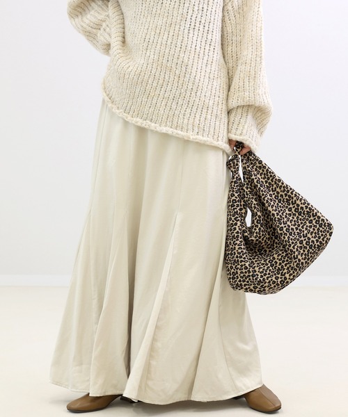 【選べる自分着丈 艶めくビンテージサテンスカート】 合わせるアイテムを変えて通年活躍する、薄手のビンテージサテンで仕立てたフレアスカート。 体型とお好みでレングスを選べるミディアムとロングをご用意しました。 着丈のみ約10cm異なる2タイプでより理想のシルエットに。 生地には華美すぎず上品に煌めくビンテージサテンを採用。 マットな艶感が重たくなりがちなニットの季節のコーディネートに女性らしさと華やかさ、 軽さを与えてくれます。「すらりと見えつつ穿き心地が楽で、さらに揺れ感も欲しい。」 こだわりシルエットを実現させたポイントはテンション緩めのゴムと丁寧に切り替えた裾のデザイン。 裾近くにあしらった三角の切替がほどよいフレア感を描き美しく揺れます。 ダークチャコールよりのブラックとオフベージュよりの柔らかな発色のグレージュ。 落ち着きがありつつ合わせやすい、着回し力のある色展開です。 ■生地の特徴 マットな艶感を見せるビンテージサテン生地。 透けを気にせず着用できる裏地付き。 ■重さ 約260g …………………… 伸縮性:なし 透け感:なし ポケット:なし 裏地:あり …………………… ※照明の関係より、実際の色よりやや明るく見える場合がございます。 またブラウザ環境の違いにより若干商品と画像の色目が異なる場合がございます。 予めご了承くださいませ。