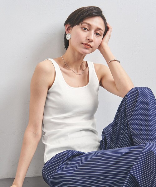 シンプルながらもデコルテを綺麗にみせてくれる頼れる一枚■デザイン広めのスクエア開きが特徴のタンクトップ。細めの肩紐と程よくフィットするサイズ感が女性らしさを引き立てます。■素材繊維長の長いギザ混の綿を毛羽の少ない糸に加工した光沢のある素材。■コーディネート透け素材のトップスのインナーや一枚着としても着回しの利く一枚です。============================裏地:なし透け感:WHITEはややあり伸縮:ややあり光沢感:なしケア方法:手洗い可============================【注意事項】※商品を使用前に、タグ等に記載されている「取り扱い上の注意書き」、「洗濯表示」を必ずご確認ください。※商品画像は、光の当たり具合やパソコンなどの閲覧環境により、実際の色味と異なって見える場合がございます。あらかじめご了承ください。※商品の色味の目安は、商品単体の画像をご参照ください。店舗へお問い合わせの際は、全国のUNITED ARROWS各店舗まで下記の品名/品番をお申し付けください。品名:UWSC C SQ TTP 品番:15176992569