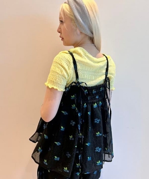 ロマンテック薫る大人フラワー ■デザイン 凹凸感のあるオーガンジー素材に、フラワー刺繍を施したペプラムキャミソール。バックはシャーリングゴム仕様で着心地も◎。華奢な肩ひもリボンと、肩紐は調整可能です。 ■コーディネート 1枚はもちろんのこと、Tシャツやタンクなどの軽やかなアイテムに合わせて大人かわいいレイヤードスタイルもお楽しみいただけます。 同素材とのセットアップもおすすめです。 ※同素材のパンツ品番:62-25-0002-438 ■サイズ 程よいフィット感サイズ。 ■素材 凹凸感のあるオーガンジー素材にフラワー刺繍をした素材。 WHITE Model : H162 B77 W60 H86 Size : ONE SIZE BLACK Model : H170 B72 W58 H86 Size : ONE SIZE BLACK Model : H162 B77 W60 H86 Size : ONE SIZE 生地の厚さ:薄手 透け感:あり 伸縮性:なし 光沢感:なし 裏地:あり ※画像の商品はサンプルのため、実際の商品と「仕様」「色味」が異なる場合がございます。 ■ケア方法 水洗い・ウェットクリーニング両方可 ※クリーニング店にご相談ください(詳細は商品についている品質表示ラベルをご覧ください) CAROLINA GLASER / カロリナ グレイサー シンガーでありデザイナー、同世代の女性より多くの支持を集めるインフルエンサーでもあるMEGが手掛けるブランド。2014年12月より、BEAMSがプロデュースをスタート。スタンダードなアイテムにトレンドを取り入れて、今の気分をすぐ身につけられるウェアをオンラインショップで提案。