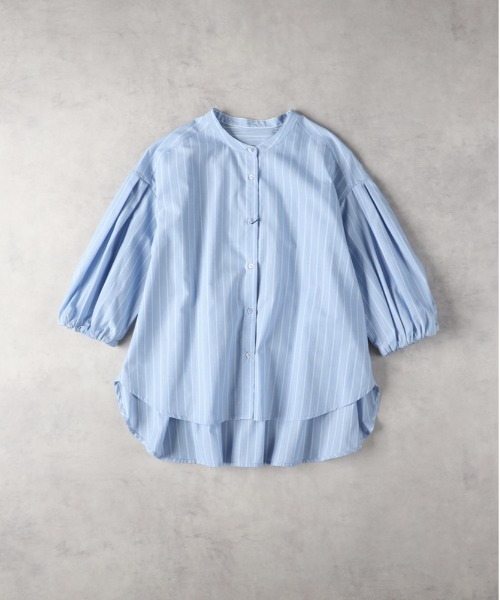 年齢を問わない洗練された印象を与えるブラウス 【Design】 ・ふわっとしたバルーン袖が、女性らしさを引き立てるデザイン ・ストライプ柄の展開で、シンプルながらもお洒落感を演出 ・前が短めのデザインにより、フロントインしなくてもスタイル良く見えます ・ややゆったりしたシルエットで、心地よく体にフィット ・後ろのゴムギャザーがふわっとした可愛いシルエットを演出し、腰回りを優しくカバー ・幅広いボディタイプに対応し、年齢を問わない洗練された印象を与えます 【Fabric】 ・肌触りの良いブロード織り生地を使用しており、さらっとした触感が特徴 ・通気性に優れているため、暑い季節でも快適に過ごせます ・また、しっかりとした生地感ながらも軽やかで、デイリーユースにぴったり 【Styling Point】 ・バルーン袖や後ろのギャザーがアクセントとなり、可愛らしいシルエットを実現 ・デイリーなコーディネートでも上品さを感じさせ、さまざまなシーンで活躍するアイテム ・ボトムスとの相性も良く、カジュアルからフォーマルまで幅広いスタイルに合わせやすい一枚 ーーーーーーーーーーーーーーーーーーーーーーーーーーーー お得に&便利にお買い物を楽しむポイント♪ ▶商品のお気に入り登録( ♥ハートマーク をクリック) お気に入りアイテムの完売カラーの再入荷通知や、 ラスト1点の通知、セールなどの情報をいち早くお届け。 ▶ショップ・ブランドのお気に入り登録 新商品や再入荷、クーポン配布などお得な情報を随時お届け。 ーーーーーーーーーーーーーーーーーーーーーーーーーーーー