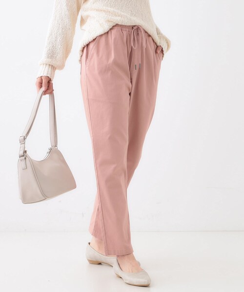 【デザイン】リラクシー感もきちんと感も備えた美脚シルエットが印象的なテーパードパンツ。ウエスト部分にポイントがあり、トップスをインにしてもかっこよく見えます。腰回りはゆったりとしていてヒップラインのカバーもでき、裾に向かって細くなっていくシルエットなので細見え効果が期待できます。【スタイリング】ウエストがゴムなので、よりカジュアルに着こなせてゆるっとしたシルエットのカットソーなどとも好相性。おうち時間やちょっとした買い物、お子様との公園遊びなどアクティブな日にも活躍するパンツです。程よいゆとりと柔らかいハリ感があるので脚のラインを拾いにくく、インスタイルだけではなくアウトスタイルでもサマになります。【お客様からいただいたコメント】・普段はLサイズを選んでいますが、こちらのパンツは収縮性がありMサイズでちょうど良かったです。 動きやすくデザインがシンプルなので、きれいめでも合わせやすく活躍できるスゴパンツです。 (身長:162cm 体型:ふっくら ブラックのMサイズ購入)・仕事場で必要なために購入しました。 薄手でこれからの季節にはぴったり。 ストレッチも効いており、とても穿き心地のいいパンツを見つけられてとても買って良かったです。 黒を購入し、穿き心地がとても良かったので、ベージュも追加で購入いたしました。 (身長:160cm 体型:やせ型 ベージュのMサイズ購入) とのお声を頂戴しております。【素材】きれいな綿ツイル素材で、リラクシーなのにきちんとキレイに見えます。【仕様】・ポケット数:横×2 後ろ×2・ウエスト総ゴム・ウエストドロスト・裏地なし※照明の関係により、実際よりも色味が違って見える場合があります。また、パソコン・スマートフォンなどの環境により、若干製品と画像のカラーが異なる場合もございます。モデル情報:身長163cm B81 W59 H88 着用サイズ:02(M)店舗へのお問い合わせ商品番号:C62-62029●製品寸法:01(S):W66~89cm H101cm 股下64cm 前股上28cm 渡り幅31cm 裾幅15cm02(M):W69~92cm H104cm 股下65cm 前股上29cm 渡り幅32cm 裾幅16cm03(L):W72~95cm H107cm 股下66cm 前股上29cm 渡り幅33cm 裾幅17cm04(LL):W75~98cm H110cm 股下67cm 前股上30cm 渡り幅34cm 裾幅18cm05(3L):W79~102cm H114cm 股下67cm 前股上30cm 渡り幅35cm 裾幅19cm10(SS):W63~86cm H98cm 股下63cm 前股上28cm 渡り幅29cm 裾幅14cm備考: