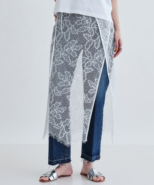 Design Point レースチュールのオーバースカートは、シンプルなアイテムに合わせるだけでトレンドスタイルへと導いてくれるアイテム。 ボトムスの上に重ねることで、旬のレイヤードスタイルが完成します。 サイドに施されたスリットデザインが動きのある印象を与えます。 Styling Point デニムやスカートに重ねることで、シンプルなコーディネートにアクセントを加えます。 Tシャツなどのカジュアルアイテムはもちろん、オーバーサイズのジャケットなど辛口アイテムともバランスよく決まります。 Fabric Point 柔らかな薄手のレース素を使用。 軽量でプラスワンしやすい、デイリーユースにぴったりのボタニカル柄レースです。 ***************************** \\気になるアイテムはお気に入り登録がおすすめ// 気になるアイテムのページにある「♡マーク」をクリックして簡単に追加できます。 登録すると、再入荷通知やお値下げ情報をメルマガにてお知らせ! マイページにてお気に入り一覧もチェックできます。 ***************************** ※照明の関係により、実際よりも色味が違って見える場合があります。また、パソコン・スマートフォンなどの環境により、若干製品と画像のカラーが異なる場合もございます。 店舗へのお問い合わせ商品番号:523-72012 ●製品寸法: 38(M):W90cm 裾幅52cm 総丈85cm 備考: