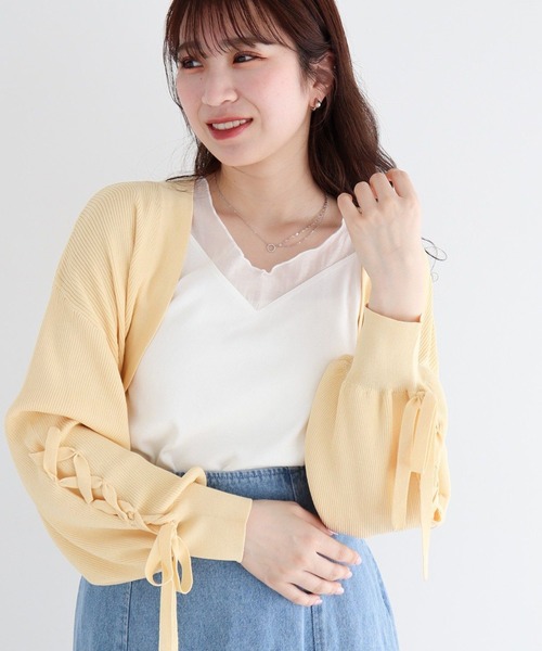 清涼感のある糸でお作りしており、気温の高い時期にも気兼ねなく着用できるボレロカーディガンです。ゆるっとしたサイズで窮屈感がなく、ボタンレスでスタイリングがしやすいデザインです。 袖や後ろ裾にはボディ同色のリボンを使ったレースアップを取り入れ、フェミニンなスタイリングにマッチします。短丈で荷物になりづらいため持ち運びもしやすく、アウターをさらに上から羽織ってもごわつきにくい点も嬉しいポイントです。 透け感[ややあり] 生地の厚さ[普通] 光沢感[なし] 伸縮性[あり] 裏地[なし] ポケット[なし] ※モデル着用画像は、光の当たり具合で色味が違って見える場合がございます。 ※お使いのモニター環境によって商品の色味が違って見える場合がございます。 ●Green Parks (fuuwa / topic / sara)● (グリーン パークス) 20以上の人気ブランドを取り扱う、全国に約320店舗展開するアパレルセレクトショップ。 ベーシックながらもさりげなくトレンドを取り入れたオリジナルブランドchocol raffine robeも展開。 ▼ 商品のお気に入り登録がおすすめです ▼ 商品ページ内のハートマークをクリック。完売時の再入荷や、最後の1点の通知、コーディネート画像がアップされたとき、お得なお値下げの際の通知を受ける事ができます。 【お知らせ】ページでも通知が確認できます。
