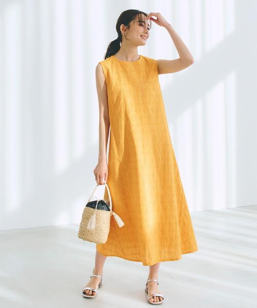 上品で洗練されたレースワンピース【デザイン】上品なエンブロイダリーレースを使用したワンピース。繊細なクラフト感があり、上品で洗練された印象のタイル調のフラワー柄をセレクトしました。素材を活かしたミニマルなデザイン。ノースリーブですっきりと清涼感のある印象で着用していただけます。裾に向かって脇線を前にふることで、自然なフレアシルエットを作っています。腰回りはすっきりと作り、大人っぽく上品な雰囲気に仕上がっています。同素材で<768‐42021>カバーオールもご用意しています。【素材】コットンローンの基布にコットンの刺繍を後から施したエンブロイダリーレースを使用しています。刺繍を後から行うことで、ナチュラルになりすぎず上品な印象に仕上がっています。【スタイル】夏のお出かけに1枚でさらりと着ていただきたいワンピース。ゴールドの華奢なブレスレットなどを合わせて、都会的に着こなしていただくのがおすすめです。羽織りアイテムには、シアーなブルゾンやシャツジャケットがこなれ感が出て◎シャツをばさっと羽織っていただいても素敵です。ブラックはスニーカーやスポーツサンダルでカジュアルな外しもおすすめです。【仕様】・ポケットなし・後ろファスナー・裏地あり※裏地のない部分はやや透け感があります。※照明の関係により、実際よりも色味が違って見える場合があります。また、パソコン・スマートフォンなどの環境により、若干製品と画像のカラーが異なる場合もございます。【25SS】モデル情報:身長166cm B80 W59 H86 着用サイズ:02(M)店舗へのお問い合わせ商品番号:768-52034●製品寸法:01(S):着丈115cm B91cm W88cm H104cm02(M):着丈117cm B94cm W91cm H107cm03(L):着丈119cm B97cm W94cm H110cm04(LL):着丈121cm B100cm W97cm H113cm05(3L):着丈121cm B103cm W100cm H116cm備考: