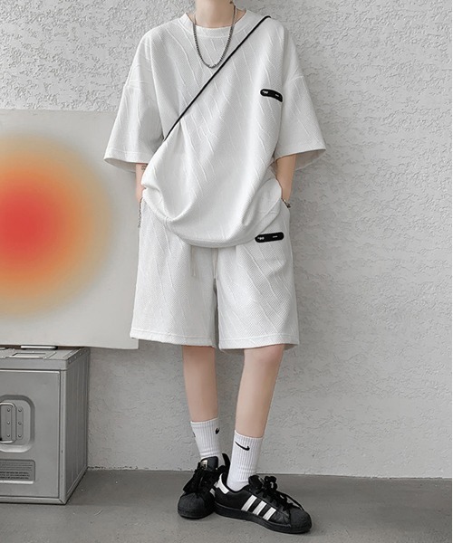 【トレンドのマグノリアジャガード セットアップ Tシャツ&ショートパンツセット】 ■人気のジャガードアイテムに旬のルーズ感をプラスしたマストアイテム! ドロップショルダーに加え、ウエストを絞らない流行のボックスシルエット。 単品でも着回ししやすいトップスは、合わせるアイテム次第で様々なコーディネートを楽しめます。 ショートパンツはウエストがゴムのラクチン仕様。 タウンユースでもルームウェアとしてもどちらでもお使いいただけます。 リラックスしたカジュアルスタイルを楽しんではいかがでしょうか。 ユニセックスなので女の子がルーズに着こなすのもおすすめです! ※サイズ表記の目安 男性:M/M L/L XL/XL 女性:M/L L/XL XL/XXL ※こちらの商品は海外のメーカーから厳選したセレクト・インポートアイテムとなります。 ※モニター・環境により実際の商品と多少色味が異なって表示される場合があります。予めご了承ください。 ※サンプルで撮影の為、仕様が変更になる可能性がございます。予めご了承ください。 春 夏 秋 冬 オールシーズン ユニセックス オーバーサイズ プチプラ 韓国 トレンド カジュアル ストリート ルーズ Y2K KPOP ダンス 【お買い物をお楽しみ頂くちょっとしたポイント!】 ■商品のお気に入り登録をすると・・・ 完売カラーの再入荷通知、ラスト1点の通知、セールの通知を受け取ることが出来ます! ■ブランドのお気に入り登録をすると・・・ 新商品や再入荷など、いち早くブランドのお得な情報を受け取ることが出来ます! 是非、お気に入り登録とブランド登録をしてみてはいかがでしょうか。 ■最短の翌日お届けは・・・ 商品をカートに入れた後、注文内容の確認ページで「翌日配送」を選択下さい。 最短でご注文した翌日にお届け致します。