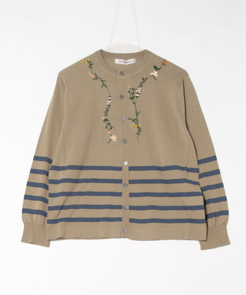 ハイツイストコットン素材の、柔らかくて着心地の良いニットカーディガン。 オリジナルで編み立てたパネルボーダーを使用した、こなれ感漂うシルエットが魅力です。 フロントには、繊細に並んだお花を1針1針丁寧にあしらいました。 ロングシーズンで活躍するアイテムです。 お手入れ:手洗い 店舗へお問い合わせの際は、下記の品番をお申し付け下さい。 [品番:34840251]