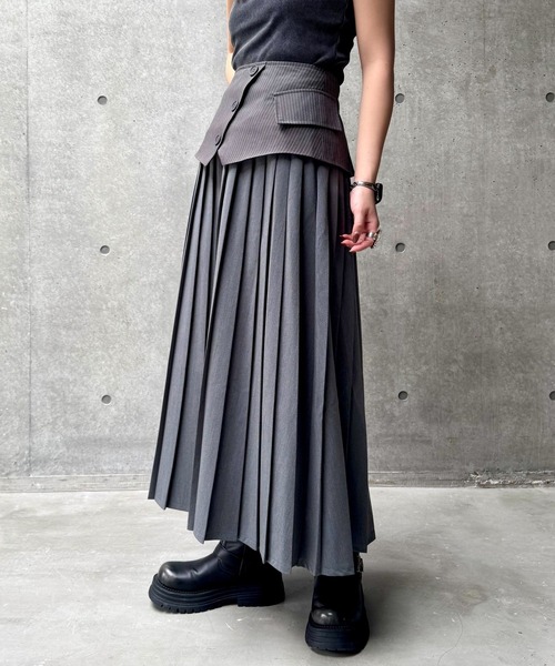 モードな着こなしが叶うコルセットプリーツスカート ウエストはコルセットでしっかり引き締め、裾にかけて広がるプリーツが際立ったメリハリのあるデザインシルエットに。 ストライプと無地の組み合わせがモードなアクセントになっています。 後ろはゴム使用なのでストレスフリー。 トップスをインしてコルセットデザインを見せるスタイリングがお勧めです。 ▼気になるアイテムは《お気に入り登録》がおすすめです! 完売カラーの再入荷情報、セール情報、ラスト1点の通知を受け取ることができます! ▼《ブランドのお気に入り登録》で新商品や再入荷などのお得な情報をいち早くお知らせします。 〈注意事項〉 ・サンプルにて撮影をしておりますので、実際の商品とは素材や仕様・加工・サイズ等が若干異なる場合がございます。 ・モニター・環境等により実際の商品と色味が多少異なって表示される場合がございます。予めご了承をお願いいたします。 ・撮影環境により、光の当たり具合で色味が違って見える場合があります。あらかじめご了承下さい。