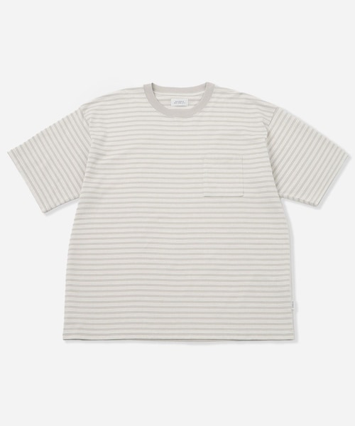【Design】 シンプルでどんなスタイルでも合わせやすいTシャツ。 シーズナルカラーで構成されたオリジナルのボーダーと程よくリラックスしたシルエットが1枚着はもちろんレイヤードに映えます。 【Point】 先染めボーダーのリラックスフィットのTシャツ。 【Material】 先染めのボーダーをオリジナルで作成したコットン100%の程よい厚みの生地感です。 【Composition】 組成:コットン100% 【Country of origin】 原産国:MADE IN CHINA 【Size Specs】 S/ 着丈 69 | 肩幅 53 | 身幅 57 | そで丈 22 M/ 着丈 71 | 肩幅 54.5 | 身幅 59 | そで丈 23 L/ 着丈 73 | 肩幅 56 | 身幅 61 | そで丈 24 XL/ 着丈 75 | 肩幅 57.5 | 身幅 63 | そで丈 25 グレー:身長 181cm 着用サイズ L size オリーブ:身長 183cm 着用サイズ L size ※画像の商品はサンプルとなります。 ※実際の商品と色味、仕様、加工、サイズ、素材等が若干異なる場合がございます。 Item Code:BBM15640