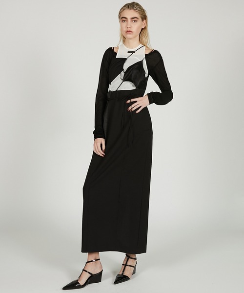 ー Style ーランダムなカットアウトデザインがエッジーかつセンシュアルなワンピース。 女性らしさが際立つスーパーハイウエストのペンシルライン。 華奢なストラップもポイント。 インにタンクトップやロゴTを合わせてカジュアルダウンもおすすめ。 ー Fabric ー 梳毛調生地をメイン使いすることでセクシー過ぎず、モードに仕上げている。 光沢のあるアセテートサテンをミックスしコントラストを効かせている。 【PRANK PROJECT/プランクプロジェクト】 常識に縛られない洗練された大人の女性に向けて ”意外性” と ”品の良さ” をMIXさせた 上質なNEW MODE BRAND ・商品のお気に入り登録再入荷、残り1点などの通知を受け取ることが出来ます。 ・ブランドのお気に入り登録新商品や再入荷、ショップのおすすめトピックスなど、いち早くブランドのお得な情報を受け取ることができます。