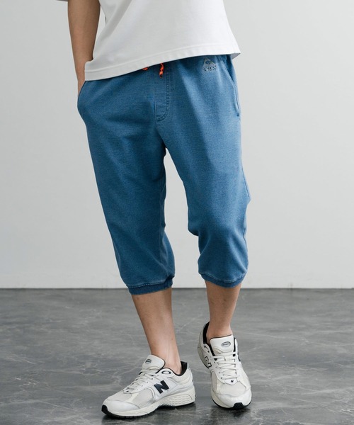 GERRY ジェリー 裏毛ウエストリブイージークロップドパンツ/デニムライクワンポイントロゴ7分丈スウェットパンツ