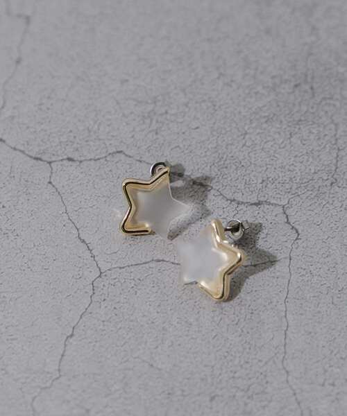 【遊び心あるモチーフピアス】 ●コロンとした星型&ハート型モチーフがキュート ●ほんのり透け感のある素材が涼しげ ●シンプルなスタイリングのアクセントに マット×クリア素材のモチーフに、ゴールドの縁取りを加えた遊び心のあるピアス。 一癖あるデザインが周りと差の付くアイテムで、どこか物足りないコーディネートにプラスワンするのがおすすめです。ほどよく透け感のある素材が春夏らしさを演出してくれるアイテムです。 【2025 Spring/Summer】【25SS】 ※金属アレルギー症状が出にくいチタン、ニッケルフリー素材、ステンレス等を使用しています。すべての方にアレルギーが起こらないということではありませんので、万が一アレルギーの症状が出ましたら直ちに使用を中止してください。 ※メッキ製品(特に銀メッキ)は変色しやすいため、こまめなお手入れで防止してください。長期放置やスプレー香料などの同時使用は、特にお避けください。 ※メッキ製品は、アレルギー体質の方や体調が低下している方など、かぶれることがあります。肌に異常を感じた時はご使用をお止めいただき専門医にご相談ください。 ※アクセサリーは壊れやすいものです。取り扱いに注意していただき大切にご使用いただけるようお願い申し上げます。 [ホシ] - : 全長1.6cm / 最大幅1.6cm [ハート] - : 全長1.8cm / 最大幅1.4cm 重量(片耳) : (ハート)約2g, (ホシ)約1.5g ※商品画像は、光の当たり具合やパソコンなどの閲覧環境により、実際の色味と異なって見える場合がございます。予めご了承ください。 ※商品の色味の目安は、商品単体の画像をご参照ください。 ▼お気に入り登録のおすすめ▼ お気に入り登録商品は、マイページにて現在の価格情報や在庫状況の確認が可能です。 お買い物リストの管理に是非ご利用ください。