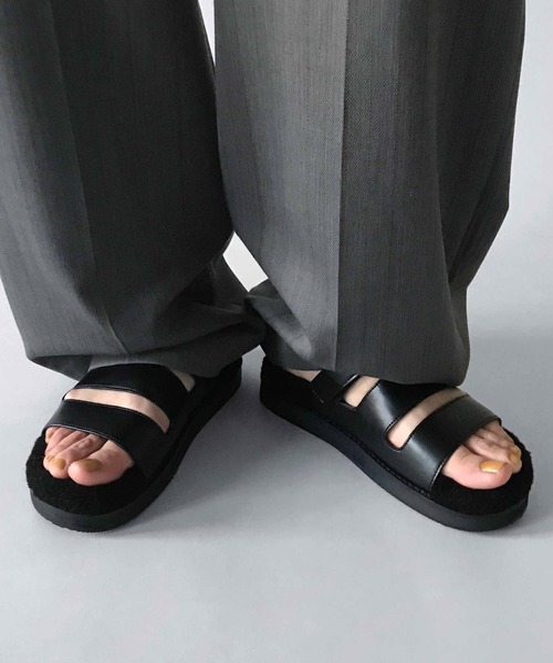肌触りの良いフェイクファーが癖になるサンダルです。 足入れするだけで今っぽく足元を昇華してくれる優秀アイテム。 素足はもちろん、秋にはソックスなどのレッグウェアとの相性も抜群な1足です。 ※画像の商品は光の照射や角度により、実物と色味が異なる場合がございます。また表示のサイズ感と実物は若干異なる場合もございますので、予めご了承ください。 ※お取り扱いの際は、商品についている品質表示とアテンションタグを必ずご確認下さい。 <<LE VERNIS/ルベルニ>> 1998年にスタートした日本の服飾雑貨ブランド。 ”Rough”・”Feminine”・”Utility” 3つのキーワードを軸に、カジュアルでありながら女性らしさを忘れないディティール、オンオフ問わず長く使いたくなる機能性や素材にこだわった小物を追求。 <<お知らせ>> ◆商品のお気に入り登録◆ お気に入りアイテムの値下げ・再入荷・在庫1点などの通知を受け取ることができます。 ◆ブランドのお気に入り登録 ◆ 新商品や再入荷、セール、クーポン配布などお得な情報を受け取ることができます。