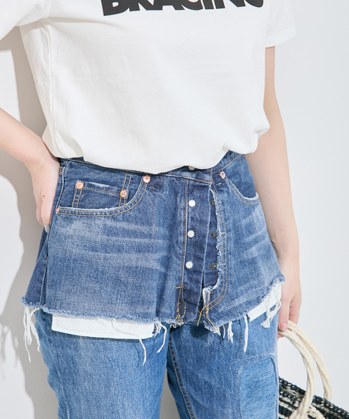 Bonumボナムのユーズドリメイクシリーズでも人気なレイヤードショートデニムをオリジナルデニムで再現しました。表裏を逆にしたデザインの新鮮な1着。裏側にはペイントデザインも施し、ボタンが内側にきますが表側でも使えるスペシャルな2WAY仕様です。スラックスやデニムパンツの上からぜひレイヤードをお楽しみください。※モデル着用サイズはサンプルサイズ26を着用しています。販売サイズの28・30は詳細画像をご確認ください。**********************透け感:なし裏地:なし伸縮性:なし光沢感:なし生地の厚さ:普通**********************※ 店頭及び屋内外での撮影画像は、光の当たり具合で色味が違って見える場合があります。商品の色味は、商品アップ画像をご参照ください。また、お客様のお使いのPCのモニター環境などにより色味が違って見える場合があります。予めご了承の上ご購入下さい。本体:洗濯機洗い(弱)