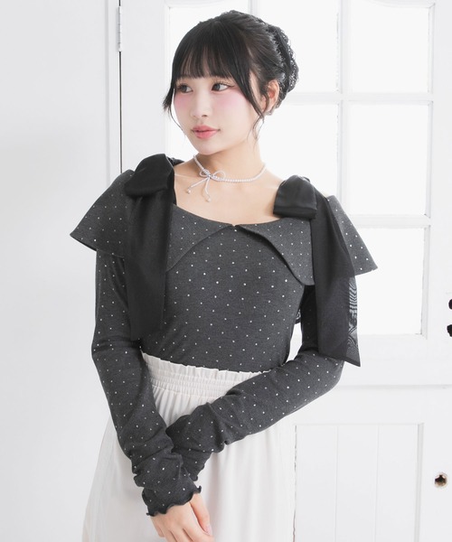 儚げ女子になれちゃう♪イマドキなオフショルデザインのリブカットトップスのご紹介。【デザイン】トレンド感たっぷりのオフショルデザインが特徴的で、程よい肌見せが女性らしさを引き立てるデザイン。エアリー感のある肩リボンがガーリーで可愛らしく、女性らしくてふんわりとした印象を与えてくれます。大きな襟が肩回りを華奢に見せ、フェミニンなシルエットを作り出します。両脇裾と袖口部分にはギャザーが施され、クシュっとしたデザインが一層の可愛さをプラス。肩リボンはご自身で結んでいただく仕様です。着用前に予めリボンを結んでからご着用ください。襟ぐり周りが広いので被りで簡単にご着用いただけます。インでもアウトでもコーディネートしやすいデザインなので、どんなスタイルにもぴったりフィットするアイテムです!【素材】伸縮性のあるリブカットソー素材を使用し、柔らかな肌触りでストレスフリーな着心地です。体に優しくフィットし、動きやすさも抜群。日常使いでも快適に過ごせます。【コーディネート】バレエコアやコケットコアスタイルにぴったりのアイテム。デートや女子会、推し活など、さまざまなシーンに大活躍すること間違いなし!シンプルでありながらトレンド感のあるデザインは、どんなボトムとも合わせやすく、インでもアウトでも決まります。1枚持っているとシーンを問わず着回しが効き、デイリーコーデにもお出かけにも活躍する万能アイテムです。※ご覧のモニター環境や撮影環境により実際の商品と多少色味が異なって見える場合がございます。ご理解の程よろしくお願いいたします。【お買い物をよりお楽しみいただく為に】▼商品のお気に入り登録をおすすめします♡をクリックしてください。完売カラーの再入荷や、ラスト1点の通知、セールの際の通知を受ける事ができます。ブランドのお気に入り登録もご一緒にお願い致します。