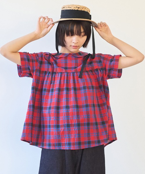 見ているだけで元気の出るぱきっとした色あいのタータンチェック。細番手の滑らかで柔らかい風合いにムラ糸を掛け合わせることでナチュラルな表情のある生地に仕上がっています。汗ばむ日にも風をたくさん通すように、たっぷりと生地をつかったブラウス。同シリーズ品番はこちら⇒パンツ:0301PT012252============================透け感:あり伸縮性:なし光沢感:なし============================※素材の特性、お取り扱いの注意水洗い可・・・中性洗剤使用アイロン可・・・あて布使用・この製品に使用している生地は、大変デリケートな素材となっております。激しい運動や極度な力が加わると裂けたり縫い目が開く恐れがります。着用着脱時には十分注意して下さい。bulle de savon(ビュルデサボン)BRAND CONCEPT女性、誰もが ふっと子供の頃を思い出し 少女のような気持ちに戻れる服。 bulle de savon =シャボン玉の事 石鹸の泡とか、においなど、 懐かしい感じ。設立年月日 1994年8月※ブルー、レッドはサンプルです。実際の商品と仕様・加工・サイズ等が若干異なる場合がございます。※モデルの着用画像は光の関係で商品の色味が若干異なります。※取り扱いの注意については取り扱い表示をよくご確認の上、着用をお願いいたします。※工場の生産の都合上、入荷の時期が前後する場合がございます。ご了承ください。