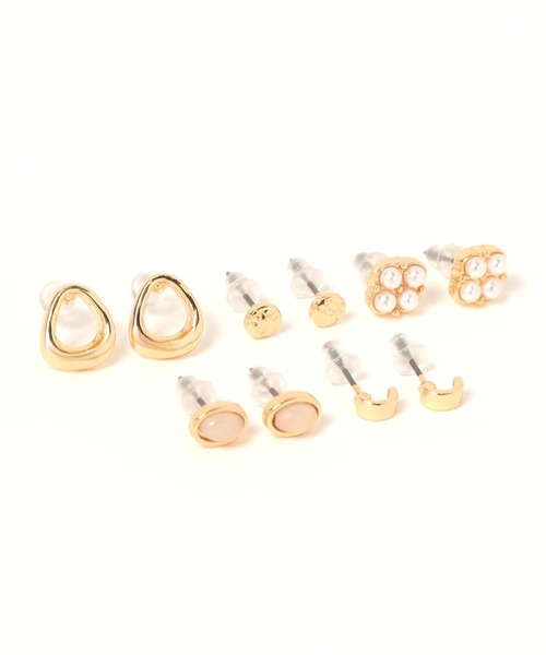 ーーー5種類のピアスがセットになったお得なアイテム。メタルやパール、カラーのものなどデザインも色々!組み合わせを楽しめるのも嬉しいポイントです。小ぶりで合わせやすく、カジュアルにもキレイめコーディネートにもぴったりです。ーーー