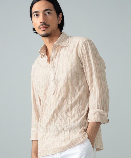 大人のリラックスムードを演出 美しい襟の開きと程よくゆとりのあるサイジングが魅力の〈Brilla per il gusto〉オリジナルのプルオーバーシャツ。ベージュを基調とした上品な配色の生地を使用し、タックイン、アウト問わず幅広い着こなしが楽しめるモダンなバランスが特徴。シーズンを彩るカラーリングと素材の風合いが大人のオフスタイルを上品に飾る1枚です。 Model:H181cm Size:L ※商品の色味は白背景商品単体で撮影した画像をご参照ください。 ※屋外撮影による光の当たり具合やパソコンなどの閲覧環境によって、実際の色味と異なって見える場合がございます。予めご了承ください。 Brilla per il gusto / ブリッラ ペル イル グスト 2003年、独自のスタイルを持ち趣味や遊びに情熱を注ぐ大人たちが、さらりと着こなせる服を提案するレーベルが誕生しました。単なるブランドバリューや流行などの情報に頼ることなく、大人の男の色気や遊び心を表現できるアイテムを展開しています。