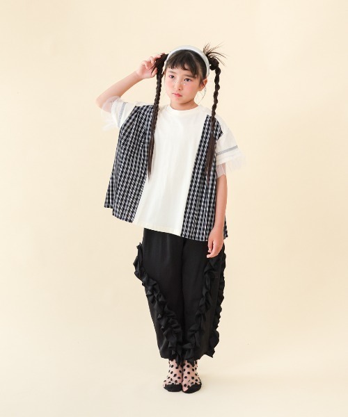 KIDS size: S(115-125cm) M(125-135cm) L(135-145cm) XL(145-155cm) LADIES size:F(155-165cm) No.251-1401-2 着心地の良い天竺と夏に人気のギンガムチェック柄の生地を組み合わせたTシャツです。 サイドにプリーツを施すことで動きやすさだけでなく、立体感のあるアイテムに仕上げました。 袖のチュールは程良い透け感で、上品さを演出。 可愛さと品の良さ、どちらも捨てがたい方にぜひオススメしたい1着です。 透け感:なし 生地の厚さ:普通 伸縮性:あり unica (ユニカ) 「服」を「楽しむ」、「楽しむ」を「日常」に! fashionableでuniqueなスタイルを提案します