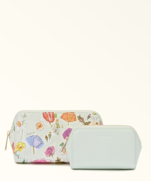 実用的でコンパクトなエンベロープデザインが特徴のフルラ カメリア(Furla Camelia) ポーチセット。コスメや小さな身の回りの品を入れてお使いいただけます。サイズの異なる2つのポーチは、コントラストの効いたカラーと質感に仕上げられています。ラージポーチは野に咲く小さな花々を描いた華やかなプリント入りの上質なレザー、スモールポーチはテクスチャードレザーを使用しています。バッグやスーツケースの整理に活躍します。- 内側にオープンポケット- ラージポーチのフロントにパンチング加工のブランドロゴとアーチロゴ- スモールポーチのフロントにパンチング加工のブランドロゴ- ファスナー式開閉