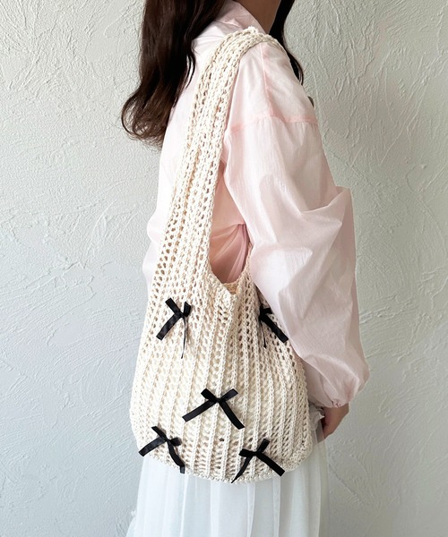 ◆春夏大活躍間違いなし!万能リボントートバッグが登場♡今年も大人気リボンモチーフのトートバッグが登場!透かし編みのバッグにちびリボンを散りばめられたデザイン♡ニット素材は伸縮性があるので小さいながらに収納力ばっちりです。お財布、ポーチ、飲み物はすっぽり入ります。中身が漏れるのが心配な方は薄手のバッグをセカンドバッグや仕切りとして使うのがおすすめです♡※ご覧のモニター環境や撮影環境により実際の商品と多少色味が異なって見える場合がございます。ご理解の程よろしくお願いいたします。※こちらのアイテムのタグは外袋の小さいシールタグになります。 保管にはお気を付けください。【お買い物をよりお楽しみいただく為に♩】▼商品のお気に入り登録をおすすめします♡をクリック!完売カラーの再入荷や、ラスト1点の通知、セールの際の通知を受ける事ができます。ブランドのお気に入り登録もご一緒にお願い致します。