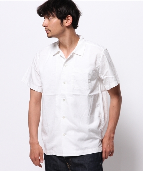 【Ciaopanic】 綿レーヨンツイルオープンシャツやや光沢のある綿レーヨンツイルを使った半袖シャツ。オープンカラーでカジュアルに外したデザインが、休日スタイルやリゾートシーンでの着こなしに重宝してくれます。ボトムスとの収まりをよくし、軽快な印象を与えるサイドスリット入り。メイントップスとしてはもちろん、軽い羽織りとしても活用できます。