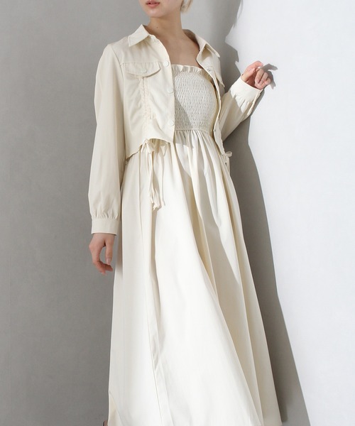 【SpRay シャーリングジャケットxキャミワンピース】 トレンド感たっぷりのシャーリングジャケット ×キャミワンピースセット。 女性らしいシルエットと抜け感のあるデザインで、大人かわいい着こなしが叶うアイテム。 ジャケットはショート丈で フロントシャーリングがアクセントになり、 表情を変えらるシルエットで華奢見え効果◎ キャミワンピースは落ち感のあるシルエットで 動くたびに揺れるエレガントな雰囲気が魅力。 肩紐はアジャスターなので 低身長さんから高身長さんまでマルチに♪ セットで着るだけでコーデが完成し、 それぞれ単体でも着回しができる 万能アイテム♪ Styling ジャケットを肩掛けしたり、 フロントのシャーリングをアシメントリーに したり、こなれ感漂うスタイル楽しめます。 スニーカーを合わせてカジュアルダウンするのはもちろん、 ヒールやブーツと合わせてフェミニンな スタイルにも◎ それぞれ別で着ても使いやすく、 幅広いシーンで活躍する着回し力抜群の セットアップ♪ #レディース #SETUP #シャーリング #ショートシャツ #キャミワンピース #フェミニンカジュアル #こなれ感 #着回し力 #韓国風 【素材感】 柔らかく肌触りの良い生地。 ※詳しいお手入れ方法は商品タグをご参照ください。 ◆伸縮性 無し ◆透け感 無し ◆裏地 無し 【商品のお気に入り登録】 完売カラーの再入荷通知やラスト1点の通知 プライスダウンの通知も受け取ることができます。 ぜひご登録ください◎ 【ブランドのお気に入り登録】 新商品や再入荷など、 いち早く情報を受け取ることが出来ます。 ※輸送時による、多少の汚れ・シワがある場合がございます。 ※撮影時のライティング、ご覧になっているモニター・PC環境により実際の商品と色味が異なって見える場合がございます。ご了承の上お買い求め下さい。
