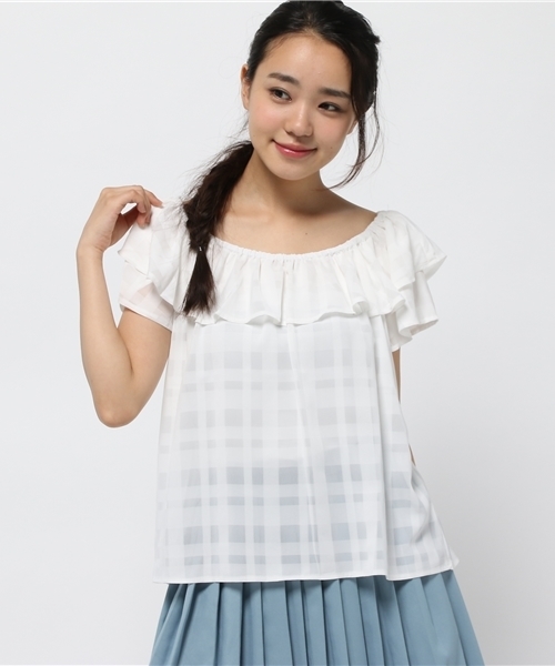 【one after another NICE CLAUP】(ワンアフターアナザーナイスクラップ) 透け感のある素材を使用した今年らしい表情のブラウス。 フェミニンムードを演出するフリルデザインとギンガムチェックが大人かわいい着こなしに。 ショップへお問い合わせの際は下記品番をお伝え下さい。品番:111310590