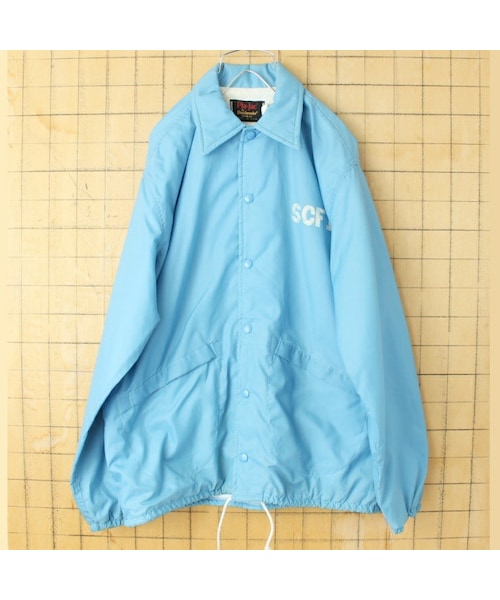 70s 80s USA製 Pla-Jac ナイロン コーチ ジャケット メンズM ライトブルー ライナー付き アメリカ古着です。 80年代頃のPla-Jacナイロンコーチジャケットです。 ボディはサラサラとしたナイロン生地。 カラーはライトブルー、胸とバックにプリント。 裏地付きです。 メンズMです。 詳細サイズにてご確認ください。 当店にてクリーニング済みです。 袖、ライナーにシミがあります。 詳細画像にてご確認ください。 【表記サイズ】 M 【素材】 ナイロン 100% 【採寸サイズ】 肩幅:50.5cm 身幅:62cm 着丈:72.5cm 袖丈:61cm