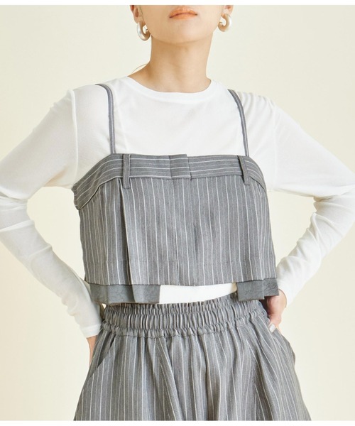 ヘリンボーンストライプが上品な印象を醸し出すキャミソール。 ●レイヤード風のデザインとパンツのようなベルトループが特徴の一枚。 ●背中のファスナーで簡単に着脱できるのも嬉しいポイントです。 ●インナーはシンプルなロンTやシアー感のあるカットソーがオススメ◎ ●キレイ目から大人カジュアルまで、合わせるボトムスによって幅広いスタイリングが楽しめます。 ●お持ちのトップスにさらっとレイヤードするだけで、コーディネートが格段にアップします! ●同素材を使用した【ヘリンボーン ストライプ カーブ パンツ】とセットアップでのコーディネートもおすすめ。 ※ストレッチ若干あり※裏地なし※ポケットあり ※肩紐調節可能/取り外し不可 ※生地のデザイン上、実際の商品と画像とで柄の配置が異なる場合がございます。予めご了承ください。 ※商品のお取扱いに関しましては、商品に付属のアテンションカード、洗濯ネームをご覧ください。 ※モデル着用画像は光の当たり具合で色味が違って見える場合がございます。 ※商品の色味の目安は、商品単体の画像をご参照ください。 【お買いものをお楽しみいただく為に!】 ▼商品のお気に入り登録 完売カラーの再入荷通知や、ラスト1点の通知、セールの通知も受け取ることができます。 ▼ブランドのお気に入り登録 新商品や再入荷など、いち早くブランドのお得な情報を受け取ることができます。