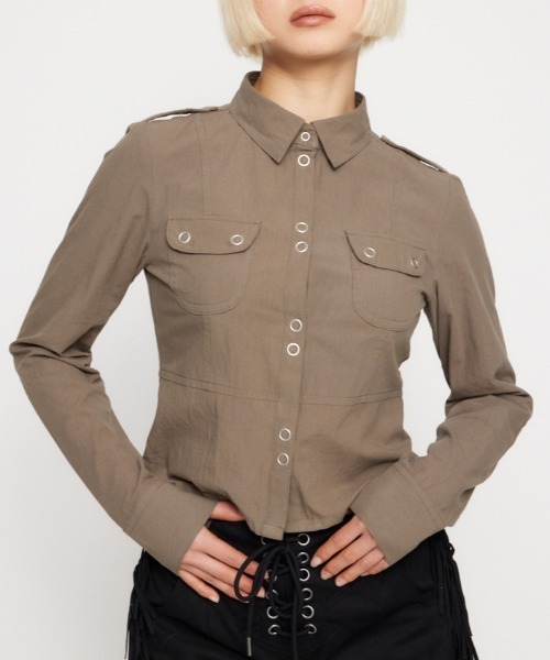 ■POINT:柔らかな風合いの生地に、メタルのリングボタンの掛け合わせがポイントのシャツ。 ■DETAIL:コンパクトなサイズ感で、一枚ではもちろん薄手のジャケットのインナー使いにも最適です。 ■STYLING:デニムやスラックスなどボトムを選ばずに着用可能。サブリナパンツやウエスタンブーツなど、トレンド感のあるアイテムと合わせたコーディネートがおすすめ。 ■透け感:WHTのみややあり ■光沢感:なし ■伸縮性:なし ■裏地:なし 【BLKに関して】 本品は素材の特性上色落ちします。洗濯、クリーニング、着用(使用)時に他の衣類や雑貨、家具類に色移りする事があります。特に汗や雨等で湿った状態では、色落ちが顕著になります。白、淡色との組み合わせは避け、お取り扱いには十分ご注意下さい。 【引き裂きに関して】 本品は素材に特性上、引き裂きに弱いです。何か力がかかり生地が傷つけられた際、生地が引き裂かれる事がありますので着用時は十分ご注意下さい。 _____________________ LAGUA GEM(ラグア ジェム) ー媚びない強さとしなやかな女性らしさが共存するスタイルー カジュアルなアイテムにストリート&ヴィンテージテイストをミックス メンズライクになりすぎない女性らしさとバランス感のある着こなしにこだわった新しいカジュアルスタイルを提案 _____________________ ▼商品のお気に入り登録 お気に入りアイテムの値下げ・再入荷・在庫1点などの通知を受け取ることができます。 ▼ブランドのお気に入り 登録新商品や再入荷、セール、クーポン配布などお得な情報を受け取ることができます。 SPRING & SUMMER ( 春服/ 夏服 )
