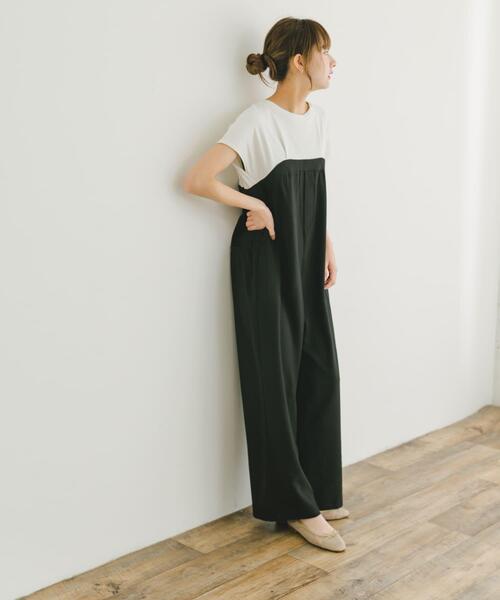 ドッキングデザインのオールインワンは、トップスとパンツ部分が異素材で切り替えられ、スタイルアップが叶います。ハイウエストで脚長効果も抜群◎さらに、体のラインを拾わず、ストレスフリーな着心地。シンプルなデザインでありながら、一枚でおしゃれが完成するので、忙しい日にも手軽に着こなせます。スニーカーやサンダルでカジュアルに、パンプスでちょっとしたお出かけにもぴったりです。 【2025 Spring/Summer】【25SS】 総重量 : 約450g ※商品画像は、光の当たり具合やパソコンなどの閲覧環境により、実際の色味と異なって見える場合がございます。予めご了承ください。 ※商品の色味の目安は、商品単体の画像をご参照ください。 ▼お気に入り登録のおすすめ▼ お気に入り登録商品は、マイページにて現在の価格情報や在庫状況の確認が可能です。 お買い物リストの管理に是非ご利用下さい。 素材感 透け感 : ややあり(上身頃) 伸縮性 : ややあり 裏地 : なし 光沢 : ややあり(下身頃) ポケット : あり FREE