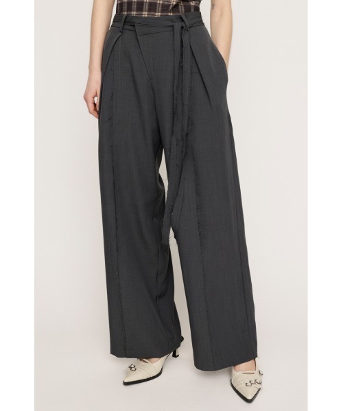 ■POINT:センターシームデザインがポイントのリラックス感のあるはき心地のトラウザー。 ■DETAIL:フロントの重なりディテールとあえて表に出した断ち切りシームデザインが着用するだけでポイントに。 程よい太さのストレートシルエットで後ウエストはゴム仕様になっているので、ストレスフリーでデイリー使いしやすいアイテムとなっています。 ■STYLING:一枚で様になるパンツなので、シンプルなトップスをインしたり、クロップ丈のシャツですっきりと見えるスタイリングがおすすめです。 カジュアルから綺麗めまで様々なスタイリングを楽しんで頂けます。 ■FABRIC/MATERIAL:シワになりにくいポリエステル素材を使用しています。 ※本品は素材の特性上色落ちします。 洗濯、クリーニング、着用(使用)時に他の衣類や雑貨、家具類に色移りする事があります。 特に汗や雨等で湿った状態では、色落ちが顕著になります。白、淡色との組み合わせは避け、お取り扱いには十分ご注意下さい。 本品は裁ち切り始末にしています。着用や洗濯、クリーニングの繰り返しにより、ほつれが増したり、裁ち切り部分が丸まってくる事がありますので、ご了承下さい。ほつれが目立った際はほつれた糸を引っ張ったりせず、カットして下さい。 [注意事項] ※画像の商品はサンプルです。実際の商品と仕様、加工が若干異なる場合があります。 ※画像の商品は光の照射や角度、お使いのモニター環境により、実物と色味が異なる場合がございます。 ※着用、お取り扱いの際は、アテンションタグをご確認ください。 ※一部予約商品につきましては生産上の都合によりお届け予定日や店頭発売と前後する場合もございます。 ※追加生産商品は、一部の店舗、通販で販売中の場合がございます。予めご了承下さい。 【SLY/スライ】 「Casual」「Girly」「Mode」をベースに発信する、ディテールへのこだわりが詰まった、どこか必ず女性らしさを感じるアーバンスタイル。 さまざまなエッセンスをミックスした、時代の空気を体現するコレクションを展開。 ▼商品のお気に入り登録 お気に入りアイテムの値下げ・再入荷・在庫5点などの通知を受け取ることができます。 ▼ブランドのお気に入り 登録新商品や再入荷、セール、クーポン配布などお得な情報を受け取ることができます。 ※こちらの商品はSLY独自の採寸方法となっています。本サイトのサイズガイドと採寸方法が異なる場合がありますのでご了承ください。
