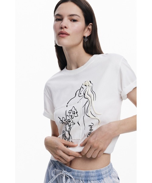 <デザイン>ピュアホワイトのコットン生地に、繊細な線描きで表現された女性と花のイラストがプリントされた洗練されたTシャツ。女性の横顔と水仙の花が調和した、モダンでミニマルなグラフィックは、まるで現代アートのような存在感を放ちます。ゆとりのあるシルエットとクロップド丈のバランスが、カジュアルながらも洗練された印象を与えています。 <スタイル>シンプルながらも芸術性を感じさせるTシャツは、様々なボトムスとの相性抜群。デニムとのカジュアルスタイルはもちろん、カラフルなスカートや柄物のパンツと組み合わせれば、このTシャツがスタイリングの洗練されたアクセントに。 <information> ・アイテムのお気に入り登録 お気に入りした商品の入荷状況や、残り1点となった際の通知、セール情報などをお届けいたします。 ・ショップのお気に入り登録 最新コレクションの入荷情報や品切れ商品の再販売、ショップニュースなど、さまざまな最新情報をご案内いたします。 <Pick up> 店舗取り置きサービスがスタートいたしました。ご注文の商品を最短即日、お近くの店舗でお受け取りいただけます。 【Desigualデシグアル】 バルセロナ発のファッションブランド「Desigual(デシグアル)」。スペイン語で“他とは違う”という意味が現すとおり、他のブランドにはない地中海をイメージさせるカラフルな色使いやエキゾチックなパターン、パッチワークやデニムなど着る人の個性を引き立てるアイテムを展開。デイリーにも、ドレスアップにも活躍する幅広いデザインが魅力。レディースだけではなく、メンズやシューズなど幅広いラインナップを展開。ブランド名にもなっているDesigual(他とは違う)は、自分自身が他の人と違うことがどれだけ大切で楽しいことなのかを改めて感じてもらいたいという私たちの願いが込められています。 自由で楽しく、カラフルで前向き。本当の自分を呼び覚ます鮮やかなカラーやプリント、他とは一味違うスタイルはファッションを楽しくするものばかりです。