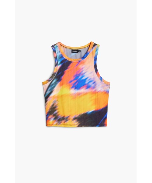 <デザイン>夕焼けの空のような鮮やかなオレンジ、イエロー、ブルーのグラデーションが溶け合う、アート作品のようなクロップドタンクトップ。リブ編みの伸縮性のある素材と、オレンジのパイピングが施されたラウンドネックが、スポーティーながらも洗練された印象を与えます。コンパクトな丈感で、現代的なシルエットを実現した一着です。 <スタイル>アートのような鮮やかなプリントが映えるタンクトップは、シンプルなハイウエストパンツやスカートとの相性抜群。デニムと合わせたカジュアルスタイルから、モノトーンのボトムスと合わせた洗練されたスタイリングまで幅広く活躍。 <information> ・アイテムのお気に入り登録 お気に入りした商品の入荷状況や、残り1点となった際の通知、セール情報などをお届けいたします。 ・ショップのお気に入り登録 最新コレクションの入荷情報や品切れ商品の再販売、ショップニュースなど、さまざまな最新情報をご案内いたします。 <Pick up> 店舗取り置きサービスがスタートいたしました。ご注文の商品を最短即日、お近くの店舗でお受け取りいただけます。 【Desigualデシグアル】 バルセロナ発のファッションブランド「Desigual(デシグアル)」。スペイン語で“他とは違う”という意味が現すとおり、他のブランドにはない地中海をイメージさせるカラフルな色使いやエキゾチックなパターン、パッチワークやデニムなど着る人の個性を引き立てるアイテムを展開。デイリーにも、ドレスアップにも活躍する幅広いデザインが魅力。レディースだけではなく、メンズやシューズなど幅広いラインナップを展開。ブランド名にもなっているDesigual(他とは違う)は、自分自身が他の人と違うことがどれだけ大切で楽しいことなのかを改めて感じてもらいたいという私たちの願いが込められています。 自由で楽しく、カラフルで前向き。本当の自分を呼び覚ます鮮やかなカラーやプリント、他とは一味違うスタイルはファッションを楽しくするものばかりです。