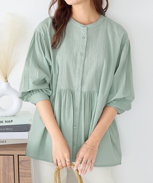 さりげない刺繍が可愛い、インド綿のブザムブラウス。ふんわりシルエットでリラックス感たっぷり。着心地抜群のインド綿素材で、繊細な刺繍が女性らしさを演出する、一枚でサマになるブラウス♪柔らかく肌触りの良いインド綿100%を使用しており、通気性も良く、春夏にぴったりの素材感。ブザム部分の刺繍が上品なアクセントに!ギャザーやタックが女性らしいふんわりとしたシルエットを叶えます。袖まわりとお尻まわりをカバーするゆったりとしたデザインで、体型カバー効果も期待できます!特徴ブザム部分にさりげない刺繍フロント、バックにギャザー袖口にタックゆったりとしたシルエット綿100%で通気性抜群素材インド綿100%を使用。柔らかく、肌触りが良く、着心地抜群です。通気性も良く、春夏にぴったりの素材感。※色味は物画像をご参照ください。※ご覧のモニター環境により画像の色味と多少異なる場合がございます。※撮影照明の関係により実際の色味と異なって見える場合がございます。予め、ご了承ください。……………………………………… 透け感: なし 厚さ: 薄い 伸縮性: なし 裏地: なし ポケット: なし ………………………………………洗濯:手押し洗い ---------------------------------------------------------------------【お買物をよりお楽しみいただく為に】▼商品のお気に入り登録をおすすめします♪『♥をクリック!』完売カラーの再入荷やラスト1点の追加、セールの際の通知を受ける事ができます。ブランドのお気に入り登録もご一緒にお願い致します。---------------------------------------------------------------------